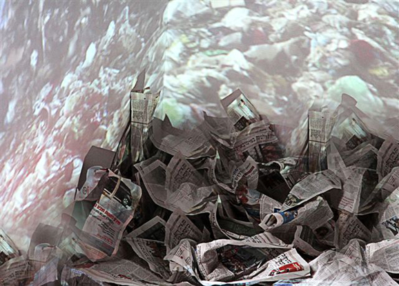 רוני בן ארי מצלמת אתר פסולת ענק המשמשת כתחנת מעבר ומהן אמורה הפסולת להיות משונעת לאתרי הטמנה. הפסולת היא תהליך אחרון של ים מוצרי צריכה ואריזות משומשות שסיימו את חייהן ומוטלות למוות. כמו האדם קטן הנלחם בגלי הים האדיר, הים האכזר, כך מרגישה האמנית העומדת במרום נקודת התצפית מול נחשולי הפסולת העצומה המאיימת לכסותה ולהעלימה. פעולת התיעוד והצילום הופכת לסמל המתריע מפני הסכנה המאיימת בשל הריבוי והצפת הפסולת בעולמנו.